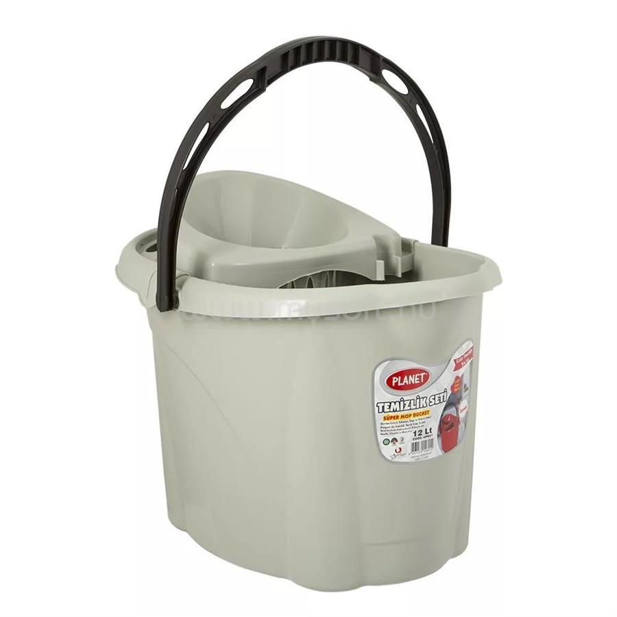 PLANET Felmosó vödör 12 literes műanyag kicsavaró kosárral szürke_UP601-002 (PLANET_57271)