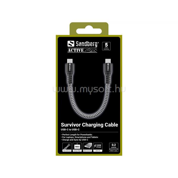 SANDBERG SURVIVOR CABLE 0.2M EGY ULTRA-RÖVID TÖLTŐKÁBEL, 100W,