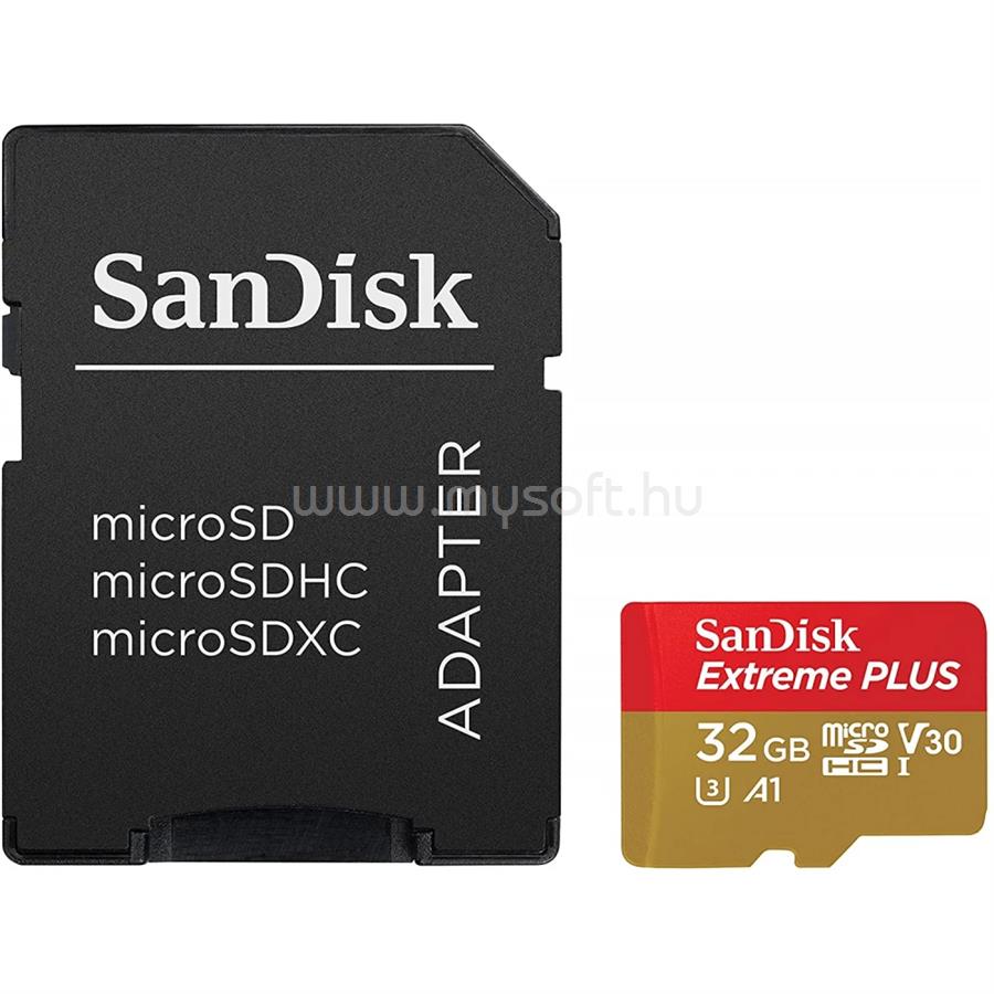 SANDISK EXTREME PLUS MICROSDHC 32GB UHS-I U3 A1 V30 + SD ADAPTER memóriakártya