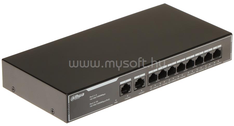 DAHUA SG1010LP 8x1 Gbps PoE + 2x1 Gbps uplink, 65W, nem menedzselhető PoE Switch