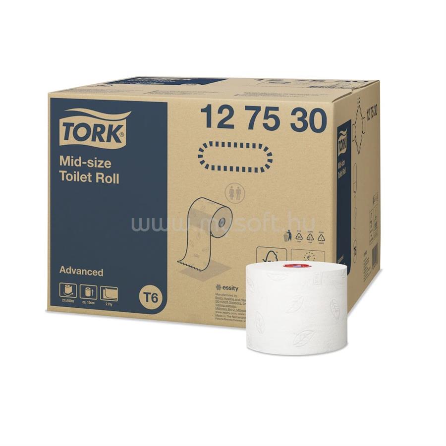 TORK Toalettpapír 2 rétegű duplatekercses átmérő: 13,2 cm 100 m/tekercs 27 tekercs/karton Mid-size T6 Tork_127530 fehér
