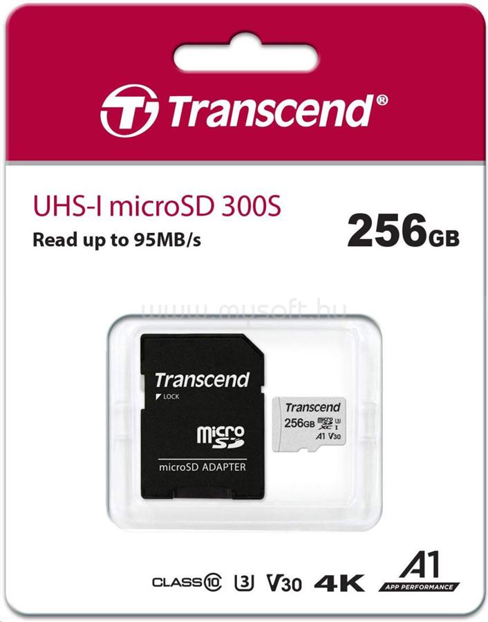 TRANSCEND MICROSDXC MEMÓRIAKÁRTYA 256GB, CLASS10 + ADAPTER