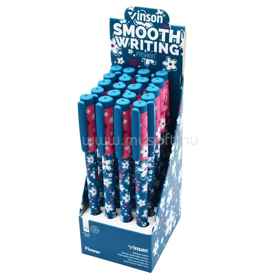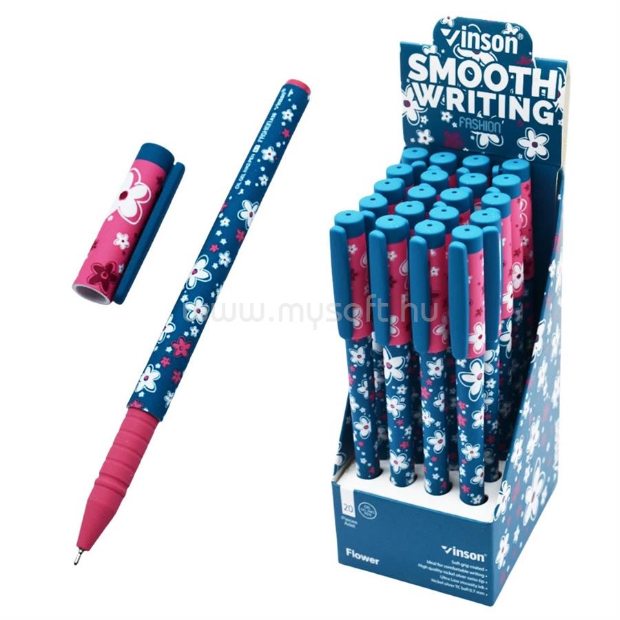 VINSON Golyóstoll kupakos, 0,7mm Flower A18 vegyes test displ 20 db/display