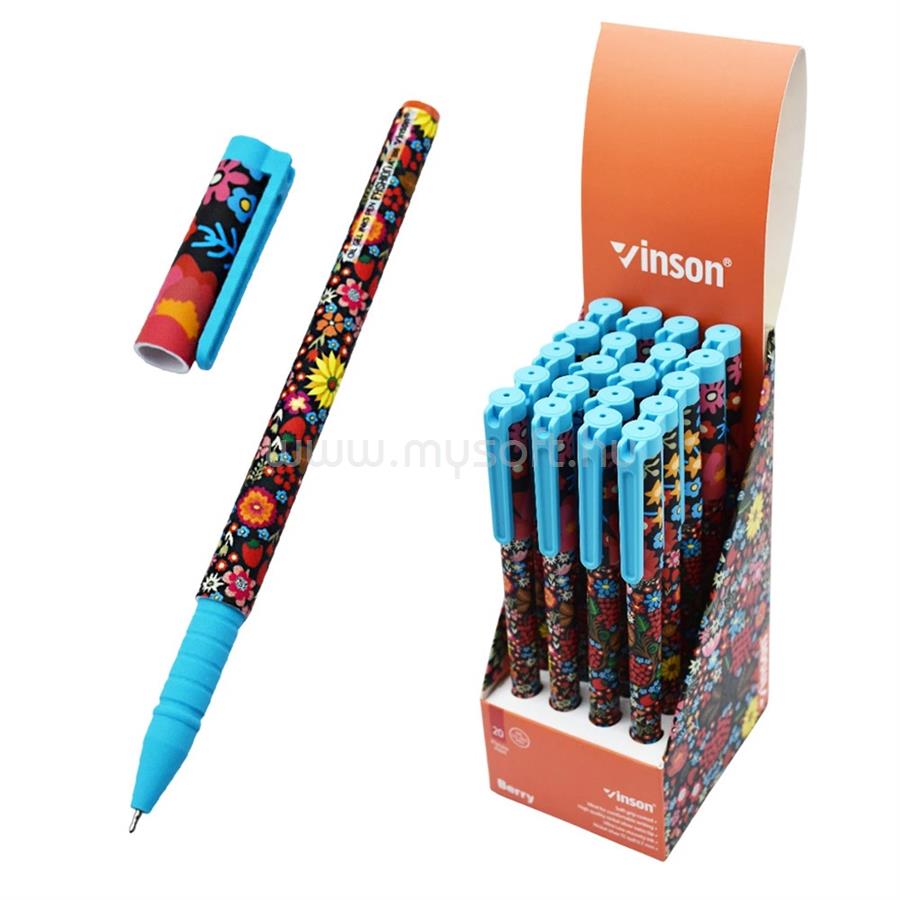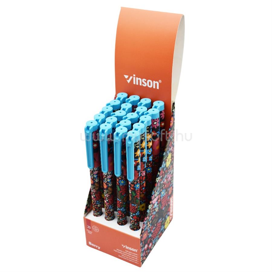 VINSON Golyóstoll kupakos, 0,7mm Berry A186 vegyes test displ 20 db/display