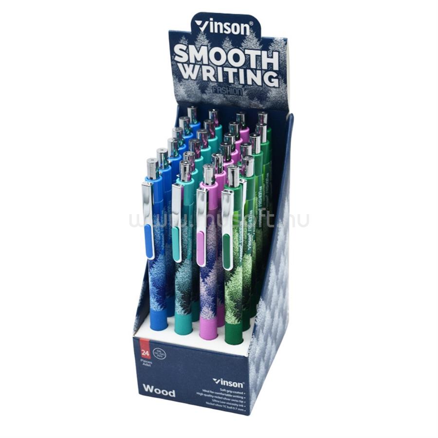 VINSON Golyóstoll nyomógombos 0,7mm Wood 108 vegyes test displ 24 db/display