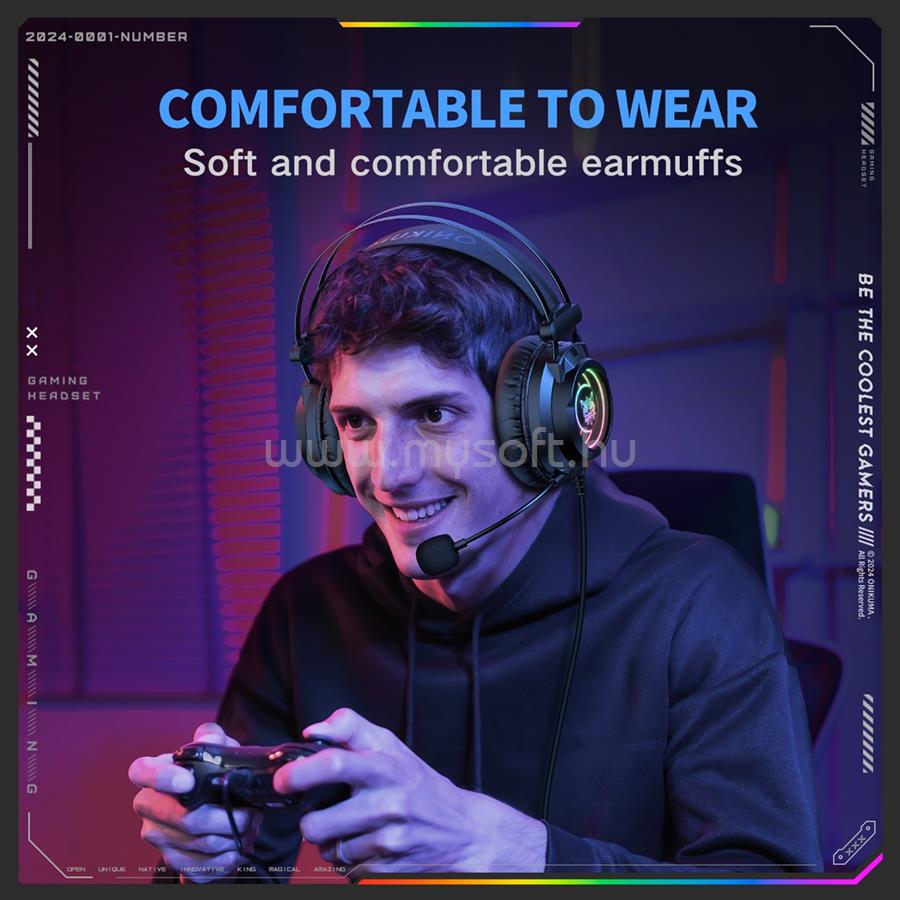 • Az Onikuma X89 ideális választás azoknak a gamereknek, akik nemcsak kiváló hangzást és kényelmet, hanem látványos, modern és egyedi megjelenést is keresnek.
