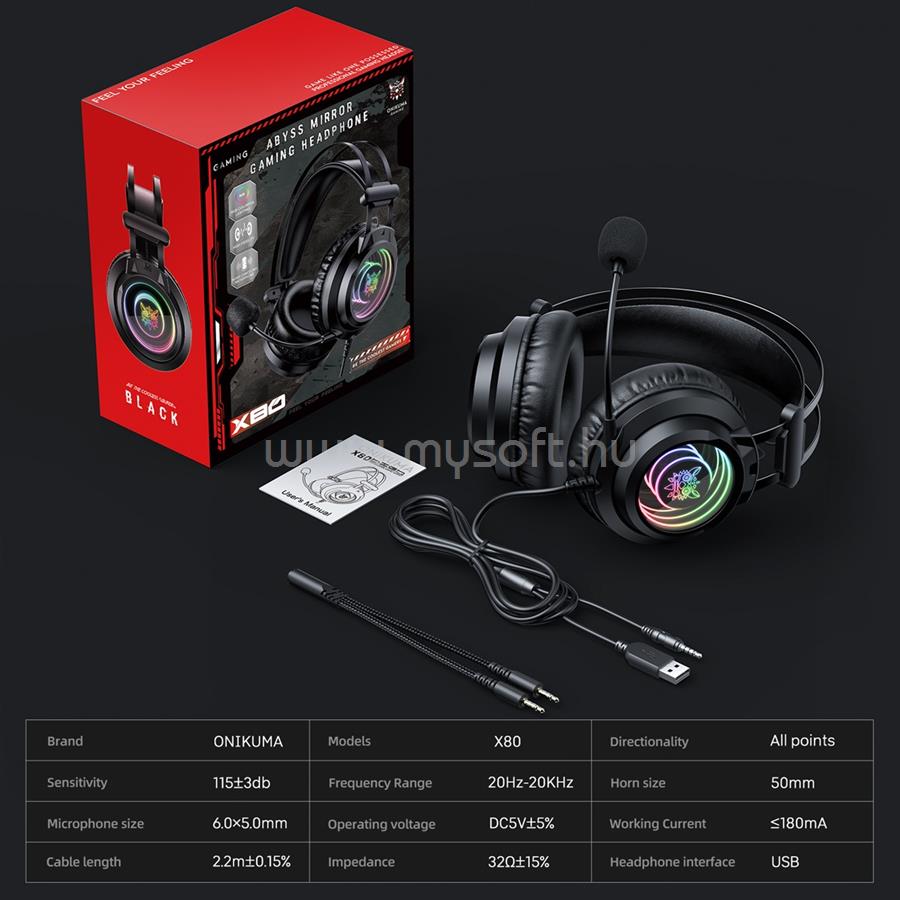 ONIKUMA X80 VEZETÉKES GAMER FEJHALLGATÓ RGB VILÁGÍTÁSSAL - FEKETE