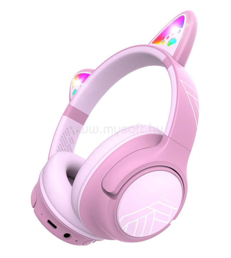 POWERLOCUS Bobo macskafüles Bluetooth fejhallgató gyerekeknek hangerőlimittel (rózsaszín)